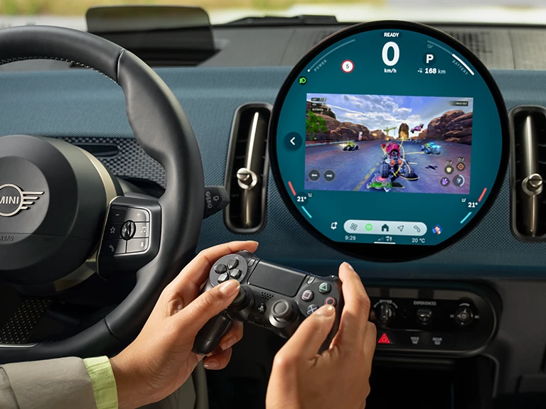 Über die direkt in das MINI Display integrierte optionale AirConsole-Spielkonsole kannst du dir bei stehendem Fahrzeug mit digitalen Spielen die Zeit vertreiben. Du kannst aus bis zu 50 Apps von Drittanbietern wählen, sodass dir nie wieder langweilig wird.
